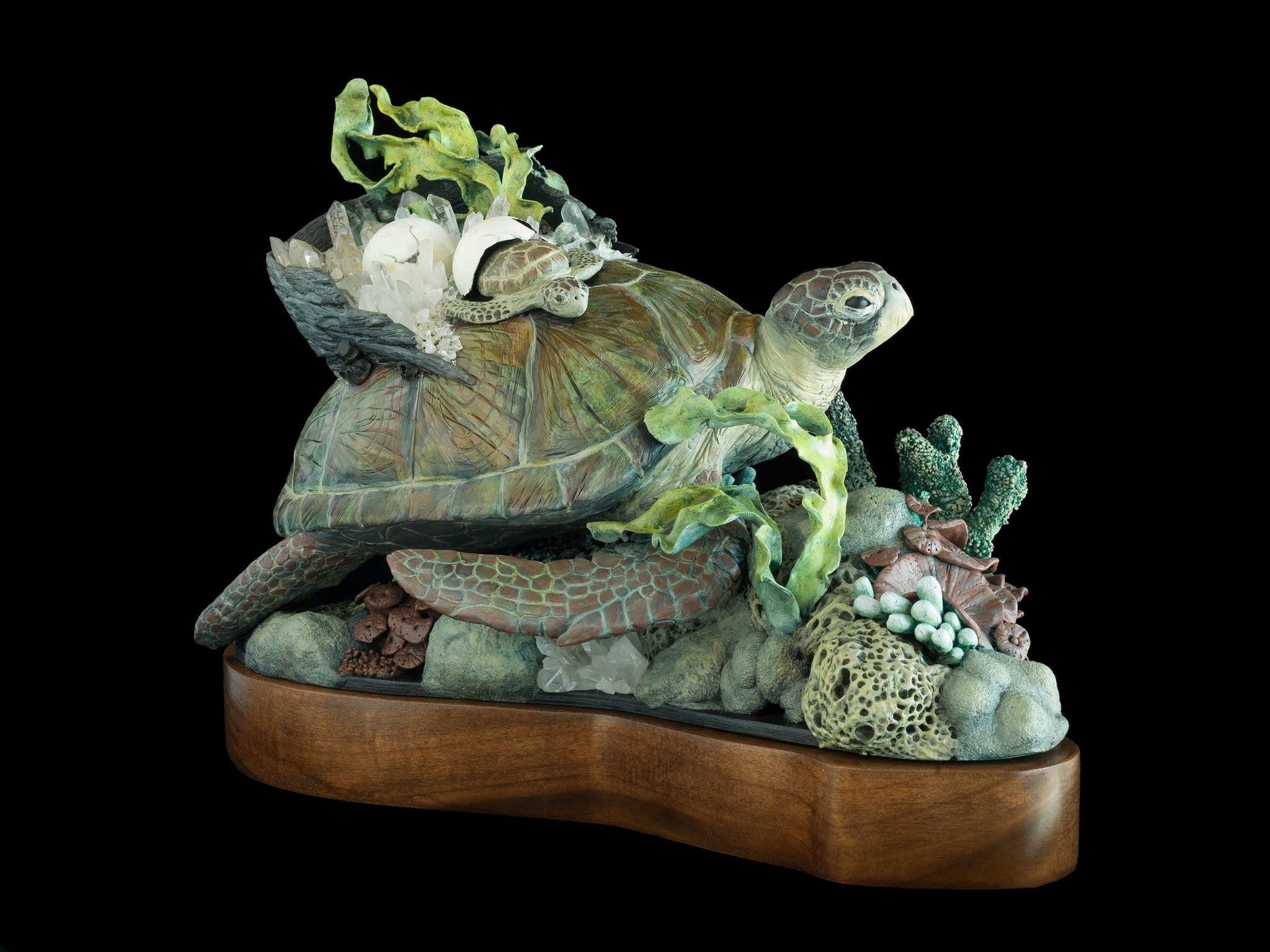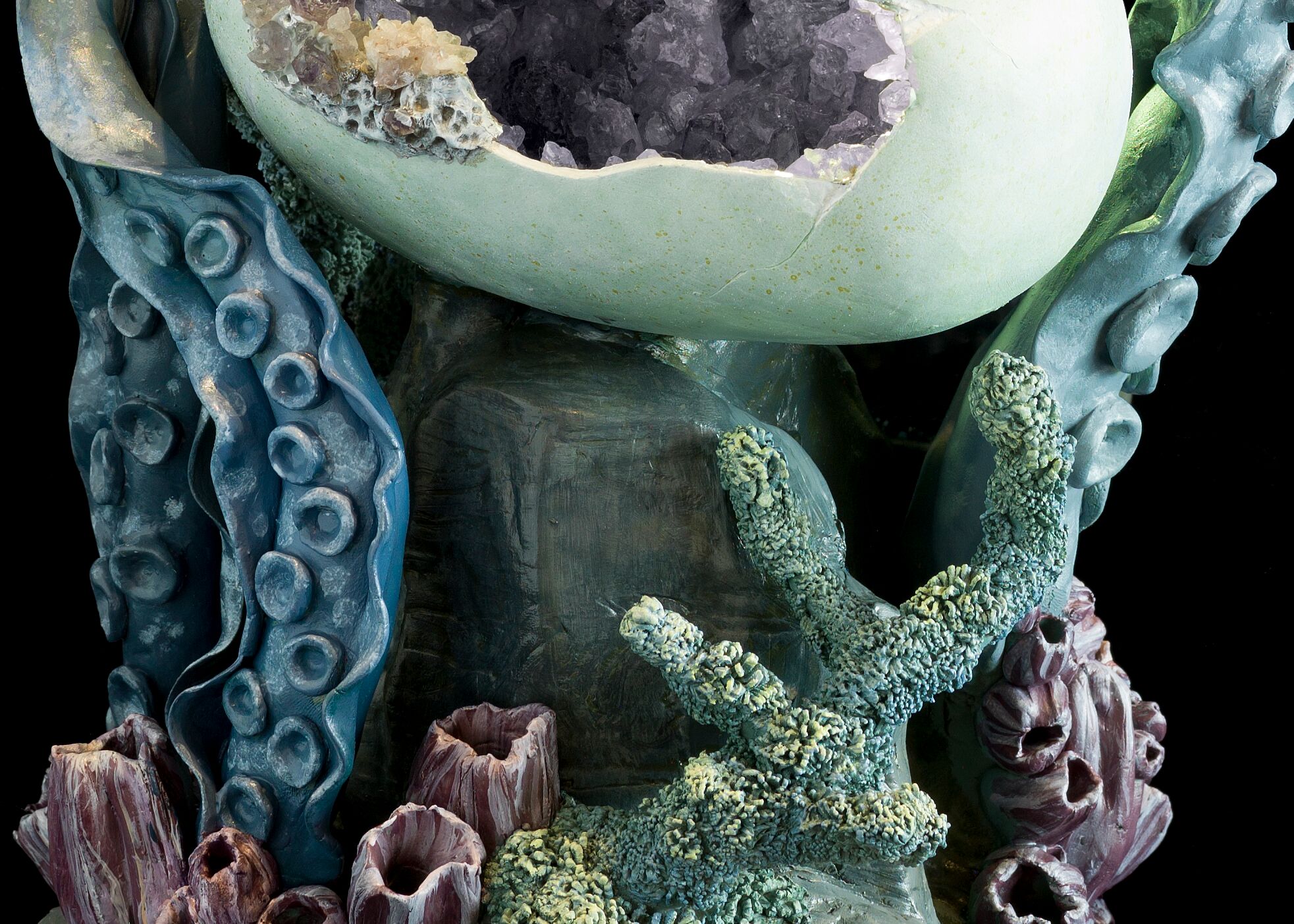 Unfurl – Epoxy clay, Amethyst, paper, wood